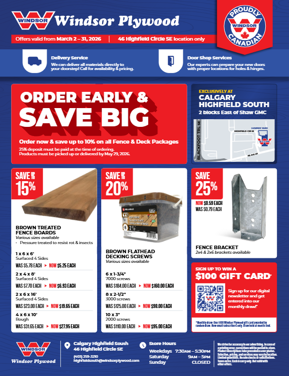Windsor Plywood Calgary Highfield South serves Calgary Highfield South and nearby communities including Highfield, Manchester Industrial, Inglewood, Ogden, Lynnwood, Millican, Forest Lawn, Acadia, Dover, Riverbend, Mahogany, Ramsay, Mission, Fairview, Chestermere, Strathmore, and Langdon. With practical guidance, dependable communication, and quality materials ready for the job, we are the experts you need to know!